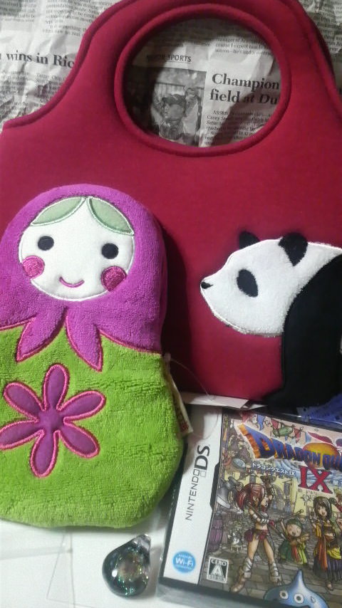 目についたマトリョシカポーチと、にーにーとこのバッグ、あと硝子細工のペンダントトップ…orz