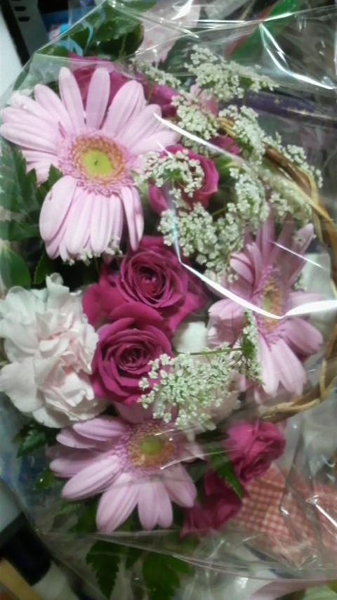 お花は花束じゃなくてバスケットに入ってて、とても可愛いのです。