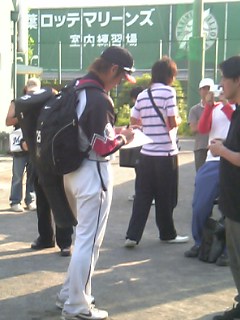 で、試合の後は特打をやっているのを出待ち場所から隙間をぬって観つつ、じりじり待ってたら出てきた!!!竹原が!